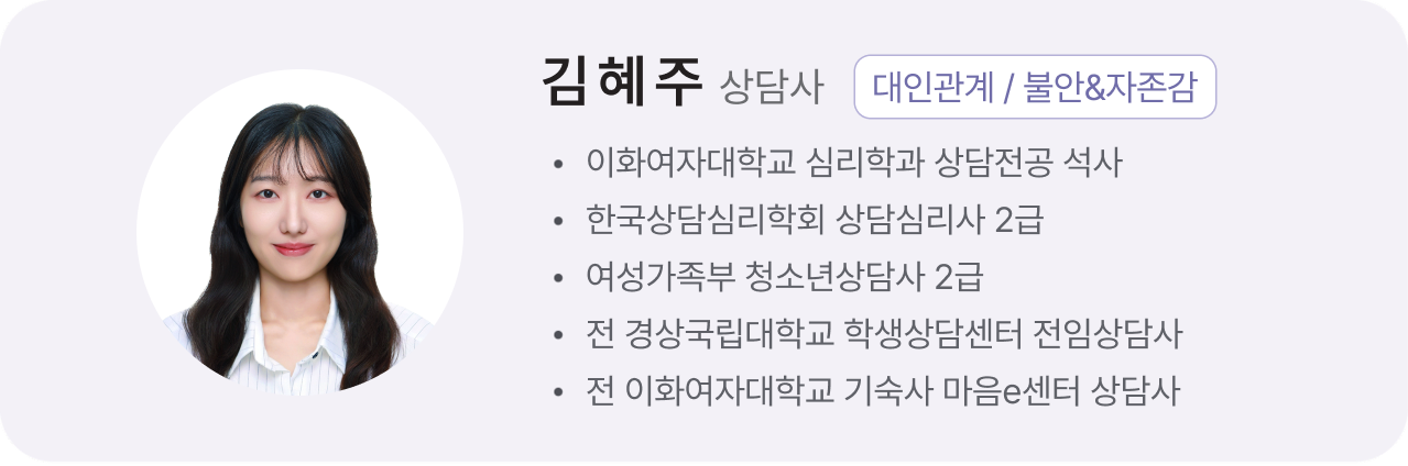 삶의 위기에 놓인 분들에게는 회복과 적응을 위한 지원을 제공하며, 개인의 성장을 원하는 분들에게는 자기 이해를 바탕으로 한 삶의 방향 설정을 돕습니다.